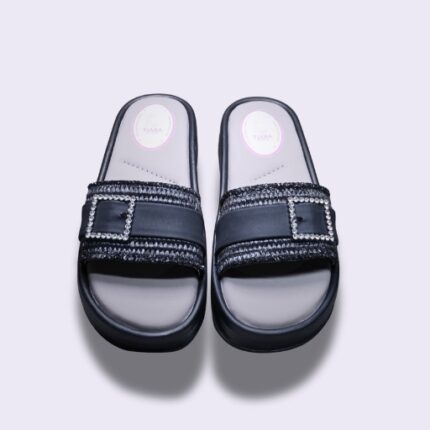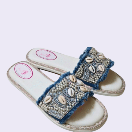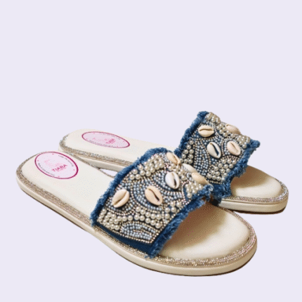The simple black strap is beautifully adorned with a vibrant beaded geometric stripe in striking colors like red, yellow, and green. This tribal-inspired detail adds a unique, bohemian flair to the classic flip-flop design. Ideal for beach trips, pool days, or pairing with denim shorts and flowy maxi dresses.